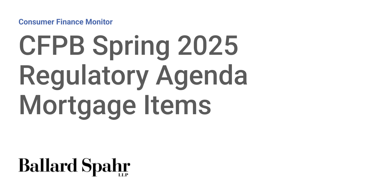 The CFPB’s Spring 2025 Regulatory Agenda outlines a transformative vision for mortgage regulation. However, with numerous proposals in early stages and the agency facing internal resource constraints, the path forward remains uncertain. The mortgage industry, consumer advocates, and legal experts will be closely monitoring the bureau’s next moves.